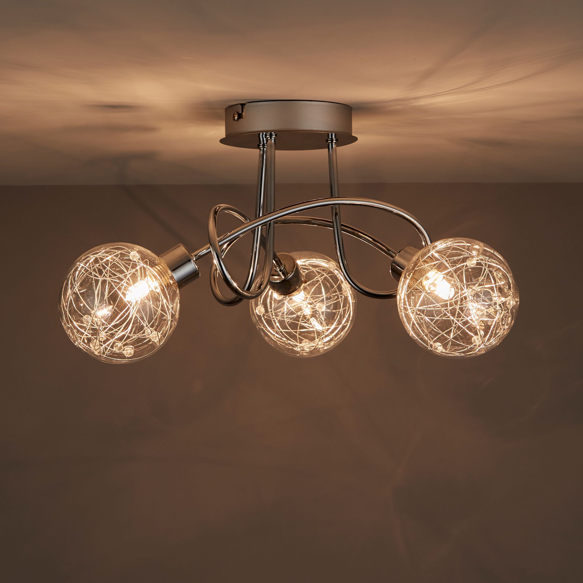 Colours Mantus Brushed Chrome Effect 3 Lamp Ceiling Light Diy At B Q